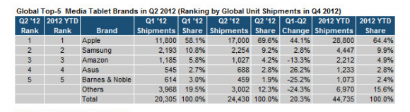 Q2 2012: Το iPad κατέχει το 69.6% της παγκόσμιας αγοράς των tablets