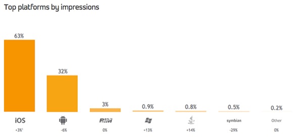Στο 63% η Apple στις παγκόσμιες προβολές διαφημίσεων, στο μισό το Android