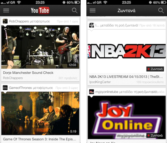YouTube 1.3, αναβάθμιση με υποστήριξη Live streams