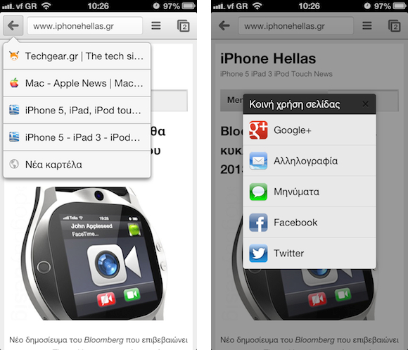 Chrome για iOS, αναβάθμιση με γρήγορη πρόσβαση στο ιστορικό και κοινοποίηση σελίδων μέσω μηνυμάτων