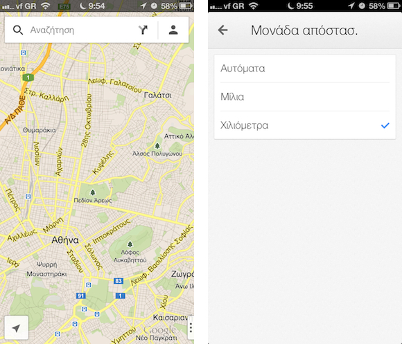 Google Maps 1.1, αναβάθμιση με αναζήτηση επαφών και ρύθμιση μονάδας απόστασης
