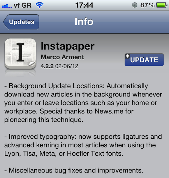 Το Instapaper αναβαθμίστηκε με υποστήριξη λήψης άρθρων ανάλογα την τοποθεσία σας