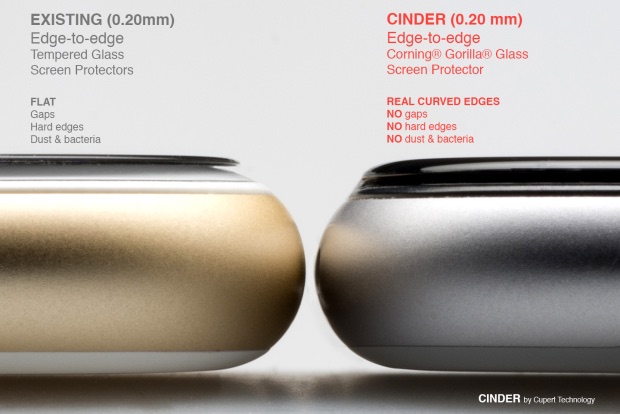 CINDER Glass Screen Protector: Μία νέα πρόταση προστασίας για την οθόνη του iPhone 6 και iPhone 6 Plus η οποία υπόσχεται πως λύνει τα προβλήματα που αντιμετωπίζουν όλες οι υπόλοιπες προτάσεις tempered glass λόγο των κυρτών γωνιών της οθόνης.