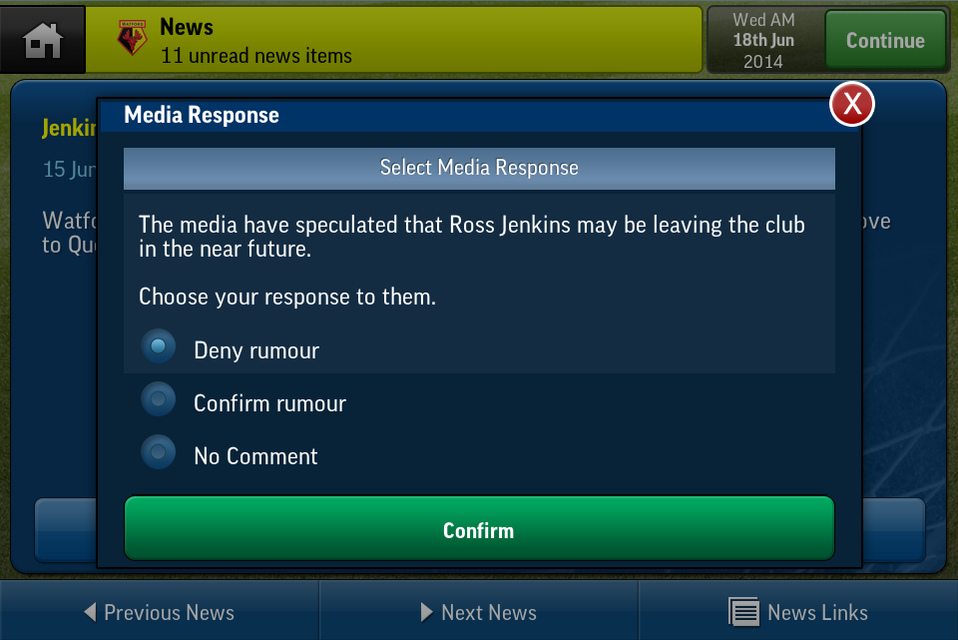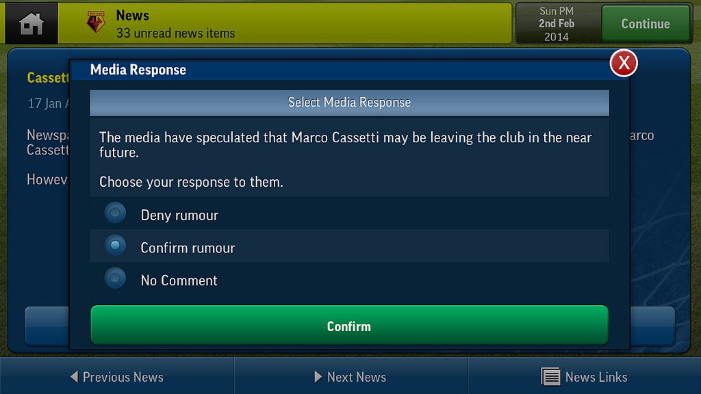 - Improved media interaction, with questions from reporters about your club’s successes, failures and the future. Can you keep the media happy without upsetting the board, fans and squad?