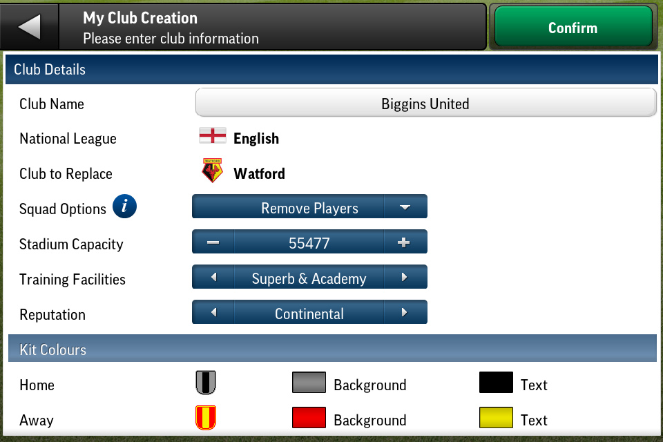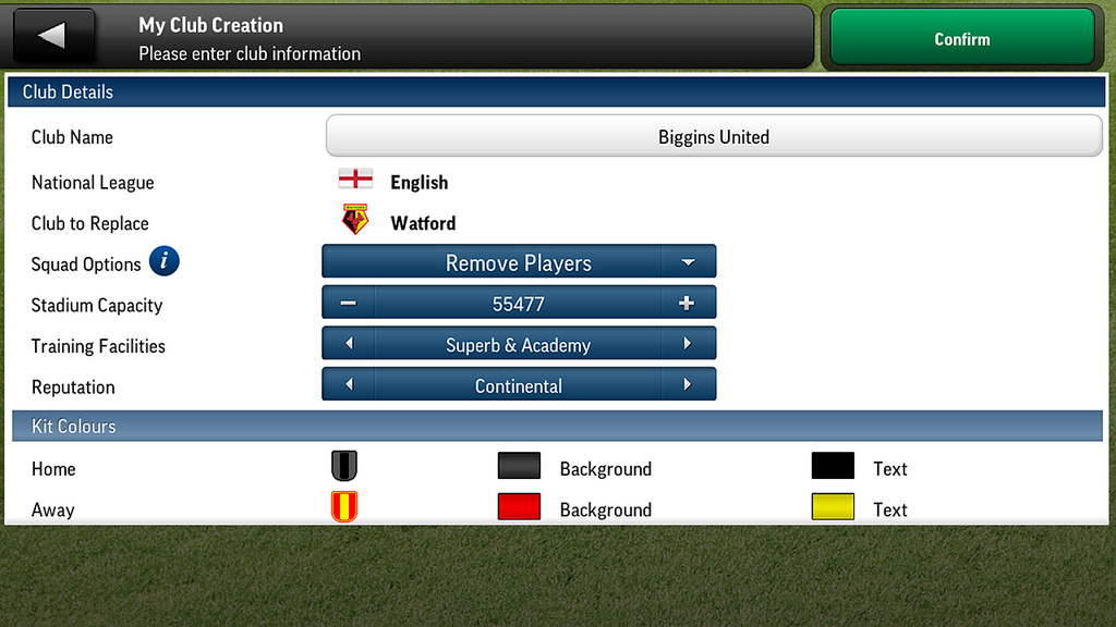 - My Club Mode allows you to create your own club from scratch. You choose the club name and kit colours and you assemble your squad. Recreate a classic team or build a squad of family and friends and then enter them into any league or international competition to compete against today’s real teams and players. It’s the ultimate football fantasy experience.