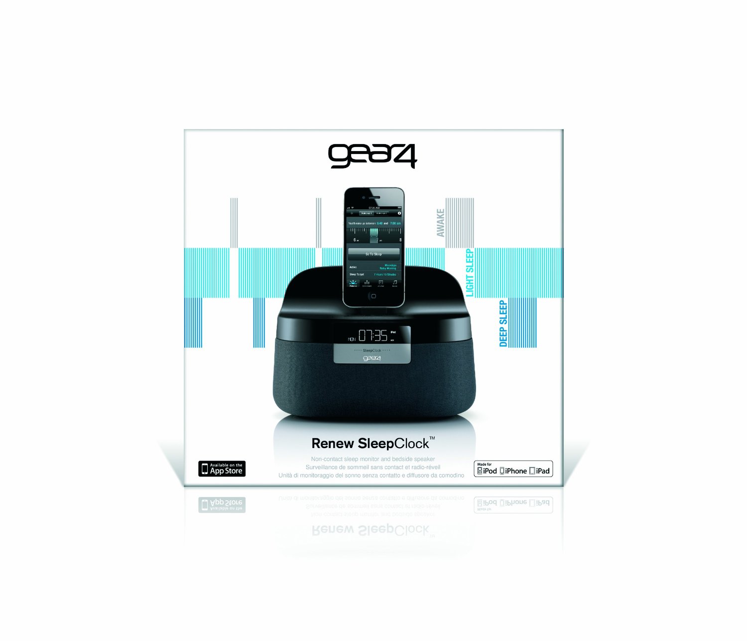Σε αντίθεση με τα κοινά ξυπνητήρια, το GEAR4 Renew SleepClock μπορεί να σας ξυπνήσει μέσα σε ένα προκαθορισμένο χρονικό διάστημα, π.χ. μεταξύ 8:15-8:45, αναλύοντας την υπνική σας δραστηριότητα και εντοπίζοντας την δεδομένη χρονική στιγμή που βρίσκεστε σε «light sleep phase».