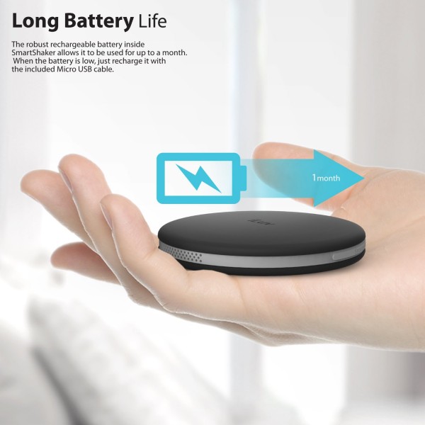 Η ενσωματωμένη επαναφορτιζόμενη μπαταρία του iLuv Smart Shaker έχει διάρκεια 30 ημερών. Η φόρτιση της πραγματοποιείται μέσω του παρεχόμενου στη συσκευασία Micro USB καλωδίου.