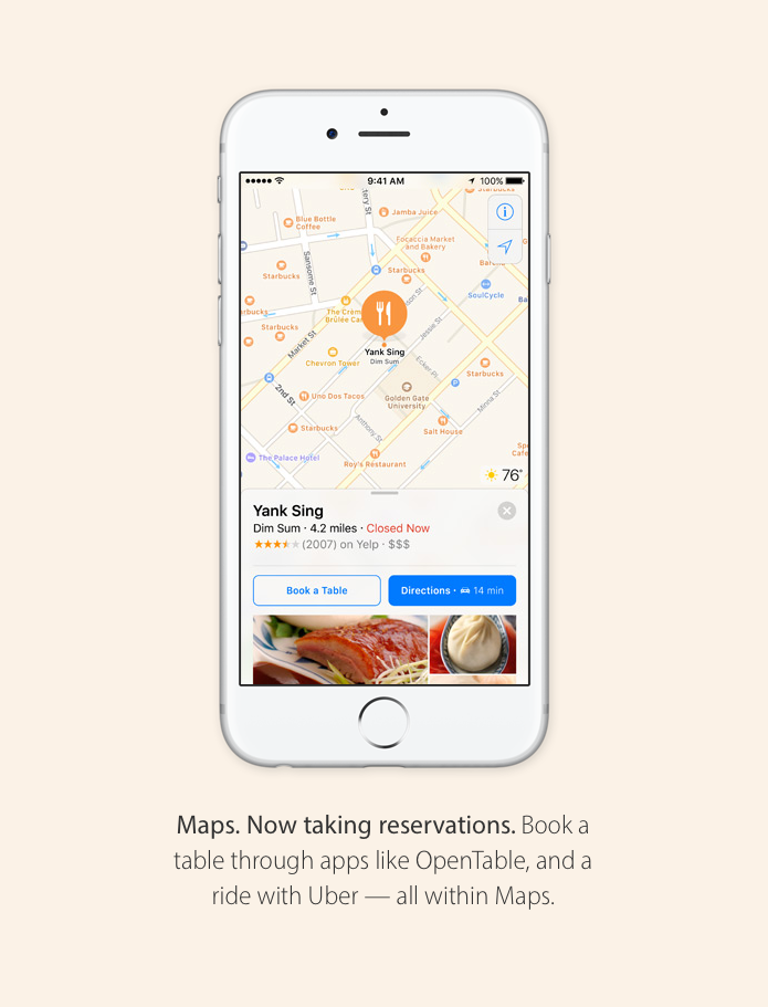 - Το Maps ανοίγει προς τους developers προσφέροντας πολλαπλά extensions που μπορούν να εισάγουν στις εφαρμογές τους (π.χ απευθείας κρατήσεις τραπεζιών σε εστιατόρια, κάλεσμα ταξί Uber κτλ.)