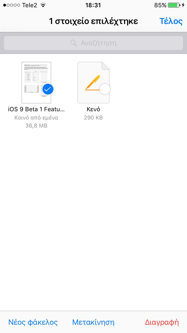 9. Το iCloud Drive αποκτάει την δική του εφαρμογή με νέες δυνατότητες όπως τον διαμοιρασμό μέσω iMessage, μεταφορά σε άλλο φάκελο κ.α.