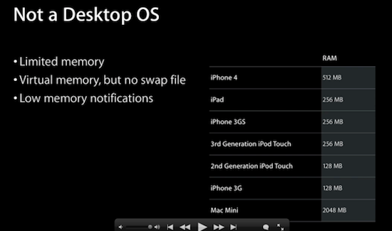 Η μνήμη αυτή είναι διπλάσια από αυτή του iPhone 3GS αλλά και του iPad. Ενημερωτικά, το iPhone 2G και iPhone 3G έχουν 128ΜΒ RAM