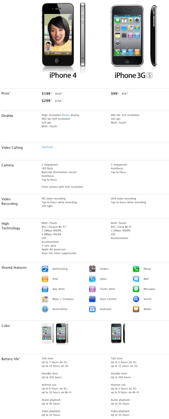Αν και ανακοινώθηκε μόλις πριν από λίγες ώρες, οι πρώτοι συγκριτικοί πίνακες ανάμμεσα στο iPhone 4 και τον ανταγωνισμό έχουν ήδη αρχίσει να κάνουν την εμφάνιση τους: