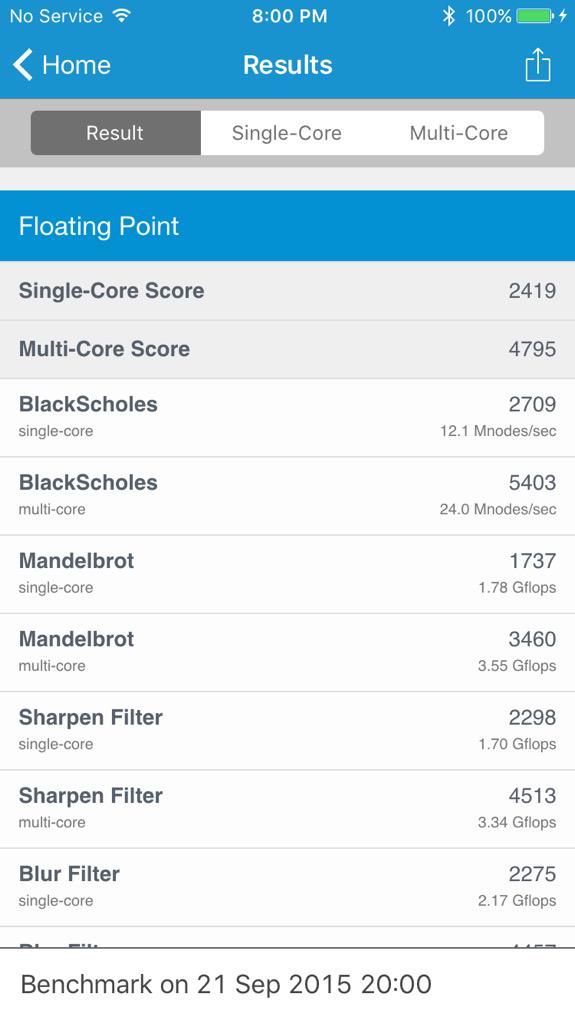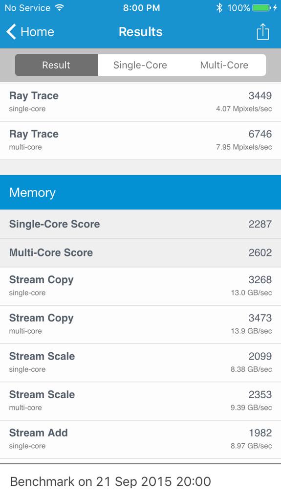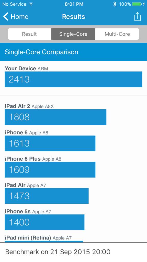 Το iPhone 6s λοιπόν με επεξεργαστή Dual-Core και 2GB RAM σκοράρει στο Geekbench 2292 Single / 4293 Multi.