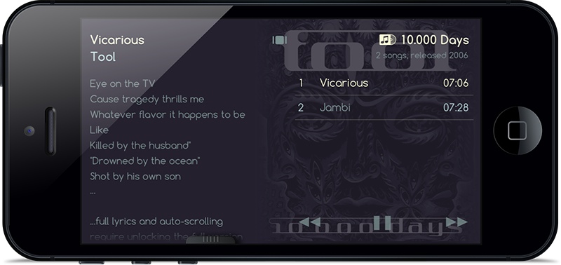 Κατα την αναπαραγωγή της μουσικής και με το UI να υιοθετεί αυτό του iTunes 11, όπου το Background προσαρμόζεται στα χρώματα του Album, θα έχουμε την εμφάνιση τόσο των στίχων για κάθε κομμάτι ξεχωριστά όσο και το βιογραφικό – ιστορία του καλλιτέχνη, όπως και τα πλήκτρα για πάυση και επόμενο/προηγούμενο.