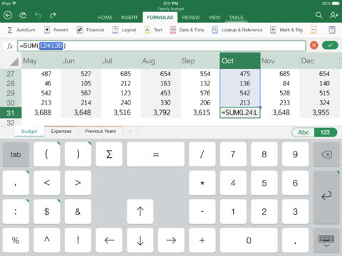 •A special formula keyboard lets you add numbers and formulas rapidly – much easier than with the standard touch keyboard.