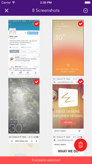 Η εφαρμογή εντοπίζει όλα τα screenshots που έχετε κατά καιρούς τραβήξει, υπολογίζει τον συνολικό αποθηκευτικό χώρο που αυτά καταλαμβάνουν, εμφανίζει την λίστα με τα όλα τα screenshots (ώστε να επιλέξετε αν θέλετε να κρατήσετε κάποιο) και τέλος, σας δίνει τη δυνατότητα να προχωρήσετε στη διαγραφή τους, με ένα κλικ.